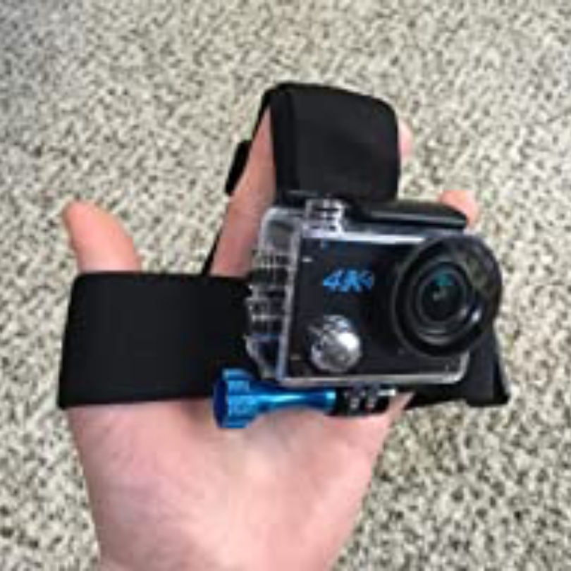 - The head strap is elastic and adjustable (one size fits all) and will keep your camera on your head without a helmet.